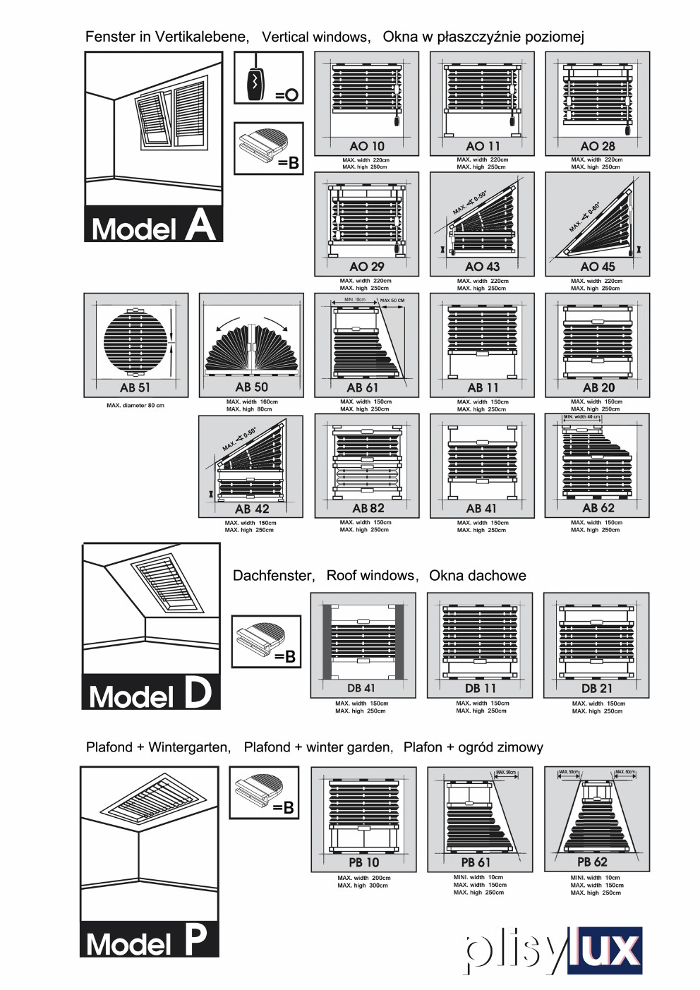 Pleated Blinds Day / Night (AB31, AB32, AB33, AB82), which enable using two fabrics in one window. So you can use the a transparent fabric during the day, and a fabric with 100% blackout for the night.